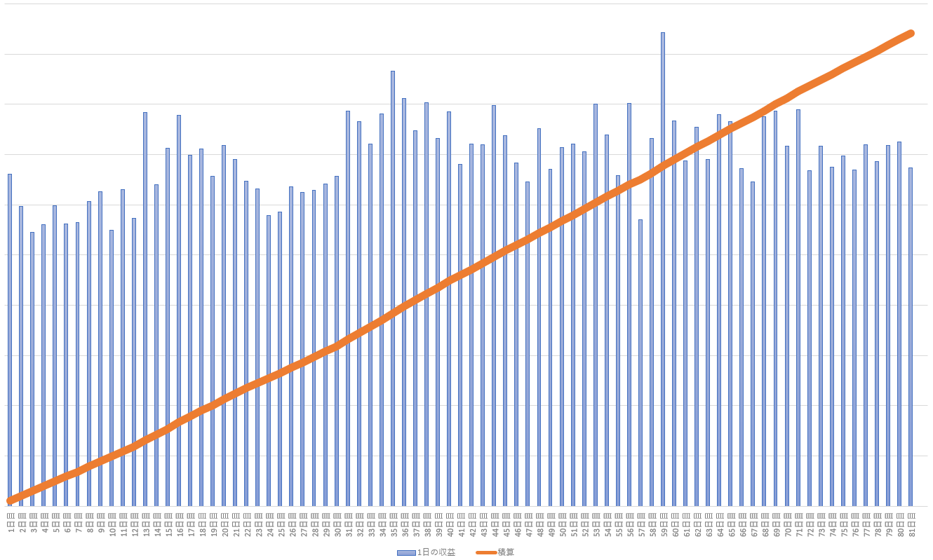 このグラフは、検証機「ZERO」を80日以上稼働させたときのグラフです。